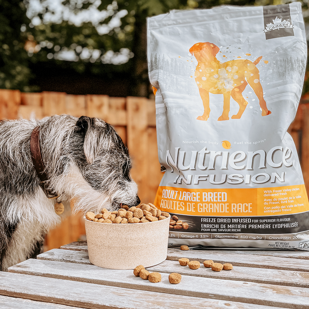 ブリティッシュコロンビアのフレーザーバレー地方で育った新鮮なチキン、GI値の低い全粒穀物(オーツとハト麦)、栄養豊富な野菜と果物を使い、衛生管理された工場で作られたドッグフードです。愛犬の健康に必要な栄養素がバランス良く含まれています。(成犬用)